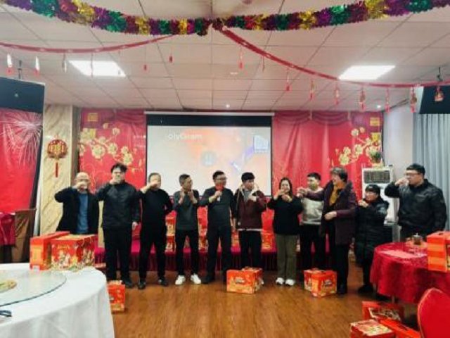 灯光璀璨,高朋满座。随着主持人热情开场,各部门领导齐步登台,共同举杯致祝酒词。一声“干杯”,不仅宣布了聚餐的正式开始,更吹响了公司上下同欲、共赴新程的号角。此刻,没有部门之分,只有相亲相爱的甬禾家人。