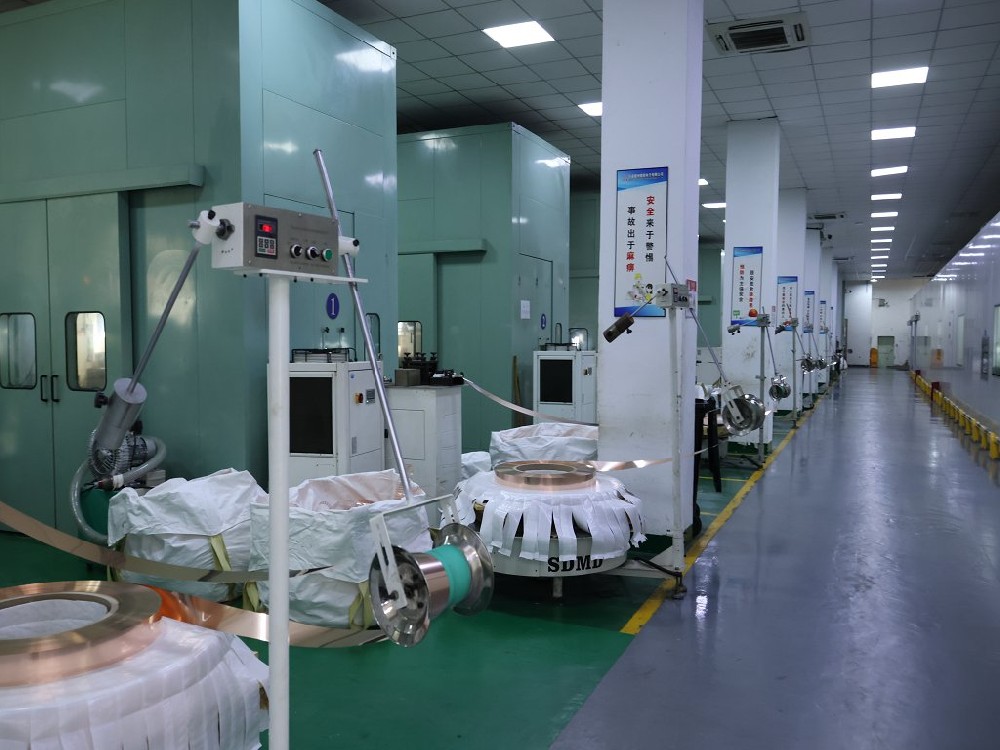 有70台40-125吨高速冲 床,能冲压0.1~1.2mm不同规格产品,冲压月产能 350万K。